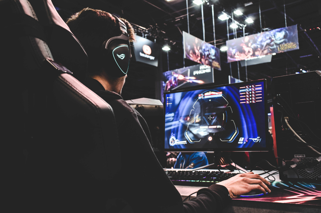 Bankbegriffe, Mann mit Kopfhörer arbeitet am Laptop