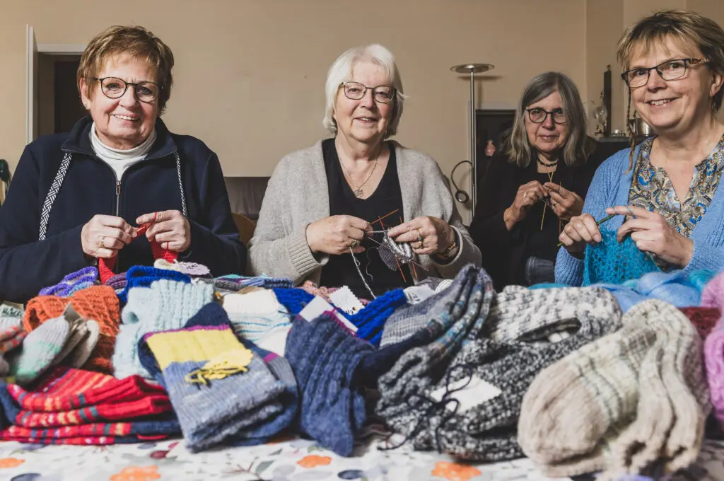 Hanneke wollte mehr tun. Die Seniorin aus dem Kreis Stormarn liebte das Stricken. Doch die Enkelkinder waren mittlerweile so alt, dass sie kein Interesse mehr an Omas selbstgemachten Socken hatten. Anfangs strickte Hanneke Reihe für Reihe alleine vor sich hin und spendete die Socken an das Projekt „Ein Rucksack voll Hoffnung“. Doch mit ihrer Ausbeute von etwa einem Paar pro Woche war die Seniorin unzufrieden. Die Not war so groß. Es musste einfach mehr werden.